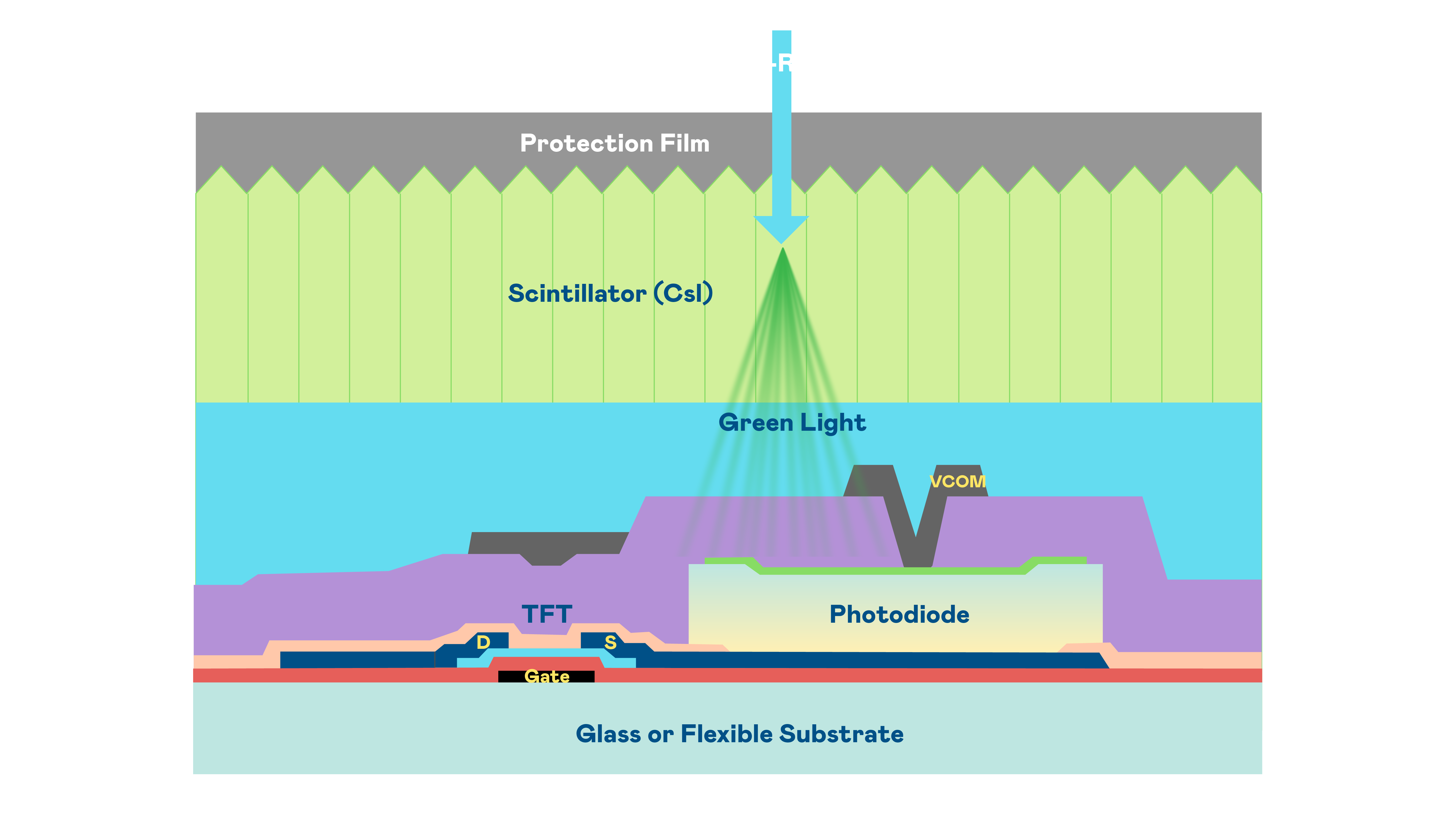 9001cc 以诚为本的X光影像感測陣列使用薄膜電晶體 (TFT) 作為每個像素的讀取開關,搭配光電二極體(Photodiode)的光電轉換元件,用以感測X光影像訊號。